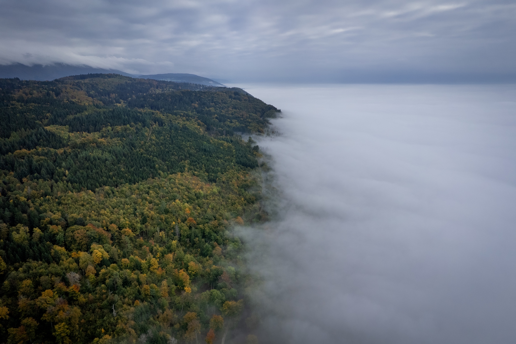 Jeudi matin le 09.10.2025, départ pour la région du parc du Chasseral pour essayer de sortir du brouillard de la Broye, et prendre les couleurs automnales